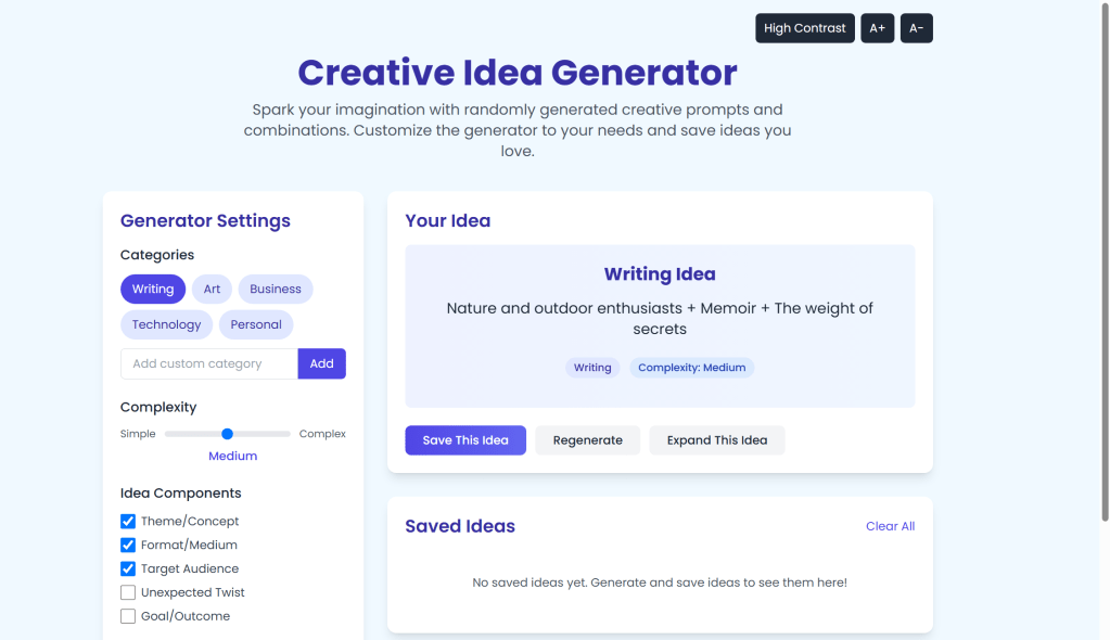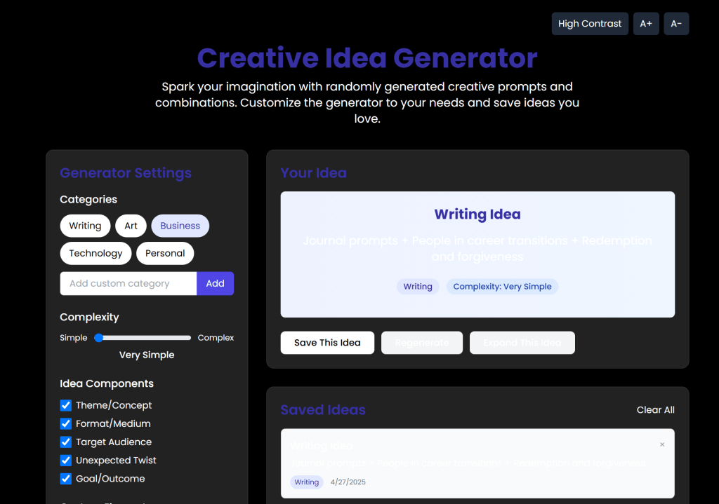 High-Contrast is just “mostly black background with some white text but also some black text on black and white text on white.” BUT, it DO change colours, so there’s that. (If you are late to the party–or, let’s hope, “early to the Canva Code Gets Debugged! Party–one can’t yet have access to the code, meaning you either